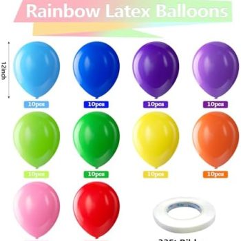 Bezente Assorted Rainbow Latex Balloons, 100 Pack 12 inch Round Helium
